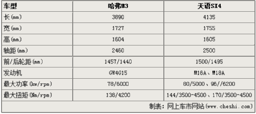 在尺寸方面,哈弗M3车长3890mm、宽1727mm、高1604mm,轴距2460mm,相比天语SX4要小一圈,不过跨界味道十足。在动力上,哈弗M3搭载自主研发的GW4G15发动机,上限功率78千瓦,最大扭矩138牛米,与长城其他车型完全一样,变速器预计将有CVT和五档手动可选。