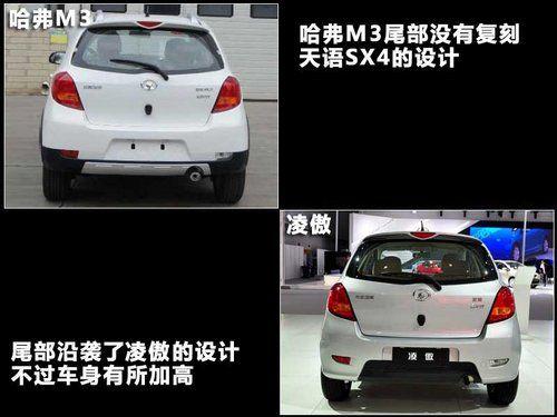 哈弗M3最早以概念车在去年的北京车展上亮相,而量产车则是纯电动车的形式,在去年12月底的广州车展上首发。哈弗M3外观设计上与铃木跨界车天语SX4非常相似,尤其从45度方向看上去,不过哈弗M3的前部更动感一些。